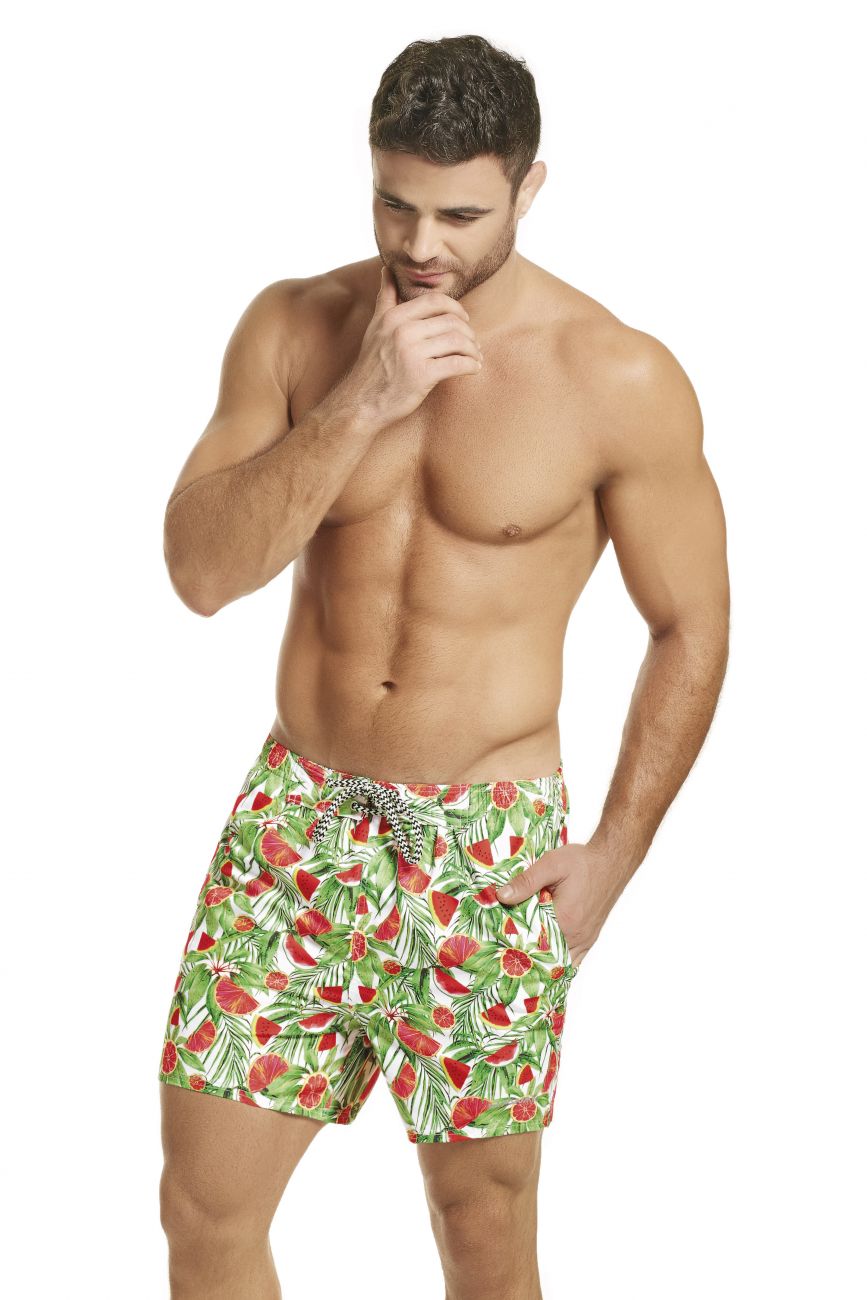 The Hawai 51804 Swim Trunks is a trunk style men swimsuit that is tailored for a sleek, body-defining fit that looks great on a variety of body types. It is ideal for swimming, tanning poolside, or just enjoying the hot weather in style. (The print may not look as per the photo or may have variations). Tropical fruits printed fabric. Two side pockets.