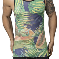 The Clever 7027 Papaya Tank Top has a papaya printed fabric with papayas in the front and transparent fabric in the back. You'll love this comfy men's muscle shirt for a variety of occasions, from pairing with jeans for hot summer days to wearing when battling it out on the court or the gym. it's made from super soft microfiber fabric that feels silky against your skin, so you can enjoy pure luxury anywhere you wear it.